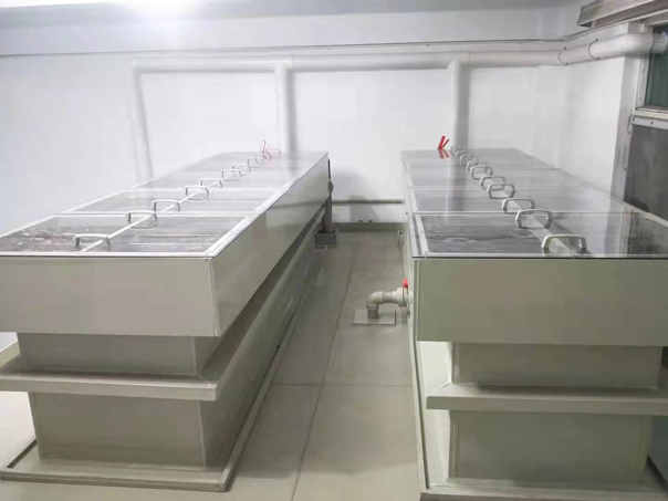 一新式碲電解簡介、現(xiàn)有精碲電解大都使用傳統(tǒng)電解槽。電解時(shí),傳統(tǒng)電解槽的陰極板與側(cè)面碲排的接觸大都為小面積的點(diǎn)接觸,導(dǎo)致接觸電阻大,電解槽壓高,電流效率低;傳統(tǒng)的電解槽只有電解部分不涉及清洗工序,功能有限。傳統(tǒng)的精碲電解槽具有自動化程度低、功能有限、電流效率低、清洗工序環(huán)境污染大、人工清洗效果較差以及成本高等缺陷,不能滿足精碲生產(chǎn)的工業(yè)化需求。